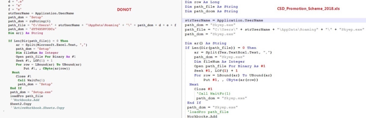 恶意宏代码的主要功能为在%APPDATA%目录下释放Skype.exe,在C:\Skype目录下释放Skype.bat,并执行Skype.bat文件:
