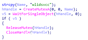 wlidsvcc.exe也是一个下载者,wlidsvcc.exe会与C2通信下载后续需要执行的插件:wuaupdt.exe、kylgr.exe、svchots.exe等等,并启动wuaupdt.exe。样本运行后通过创建互斥量“wlidsvcc”以保证只有一个实例运行: