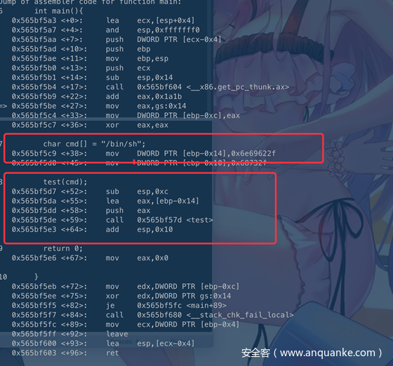 # 6e69622f /bin ebp-0x14 低地址后压栈
