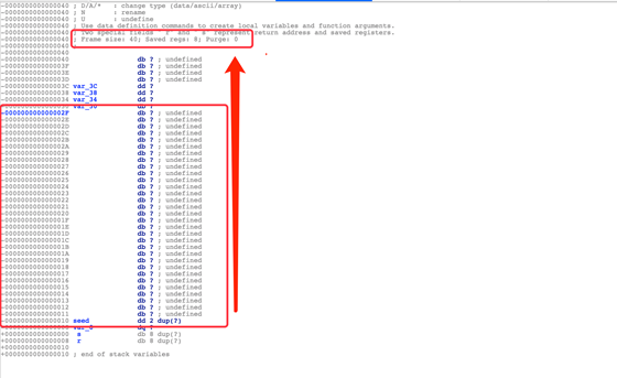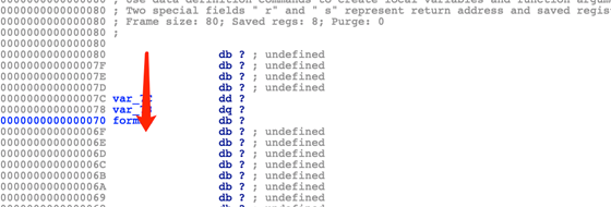 由于我是多次调试的,所以内存地址总会发生变化,所以读者没必要太关注内存地址,由于内存地址偏移量是不变的,我们只关注内存差值就行了。