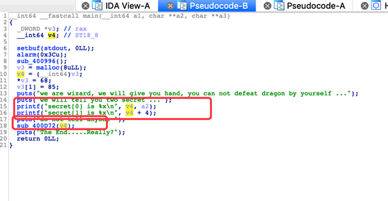 很明显这里用了gets所以我们可以直接retlibc hello函数