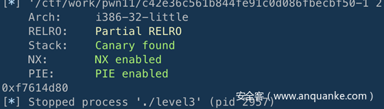 可以看到是32位程序, 开启了NX保护,意味着栈没办法执行代码。