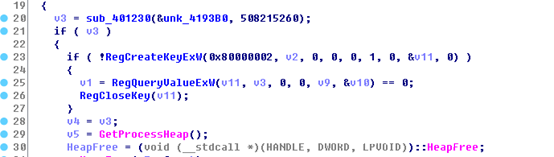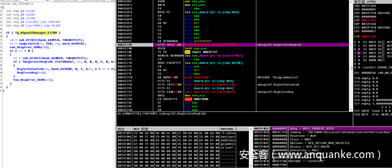 如果在创建服务器之前调用OpenSCManager失败则表示当前无法通过服务来保持自启动,则会通过Run注册表来保持持久性攻击的目的: