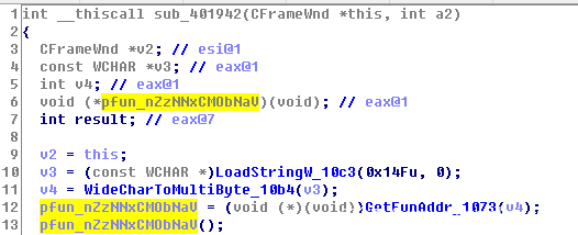 该样本基于MFC编写,功能代码在导出函数中实现,在创建窗口之后通过消息处理函数来调用导出函数nZzNNxCMObNaV。