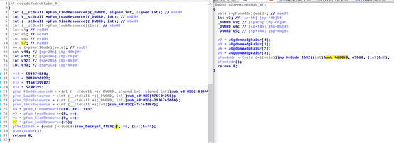 一种方法是通过将加密的ShellCode保存在数组中,另一种是将加密的ShellCode放置在资源数据中,通过FindResourceA等系列API获取资源并解密数据。