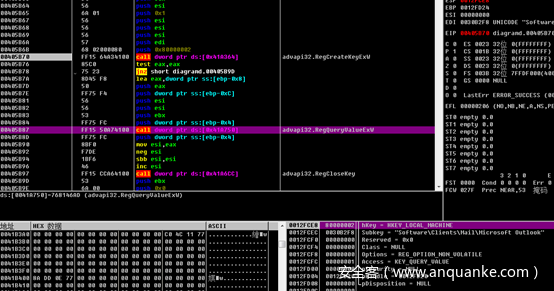 该DLL启动之后会查询OutLook的注册表DLLPathEx项的信息: