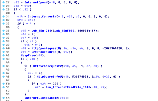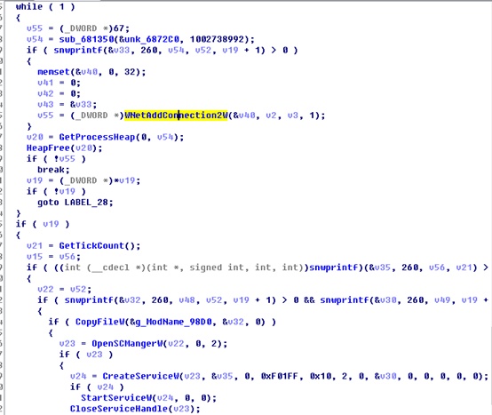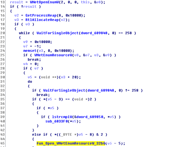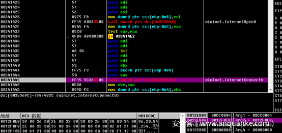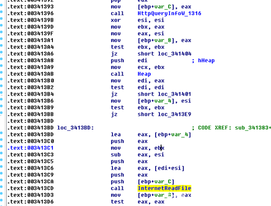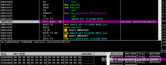 如果通信成功则调用InternetReadFile从服务器读取数据,如果通信失败则通过通过WaitForSingleObject等待4571ms之后循环以上步骤。