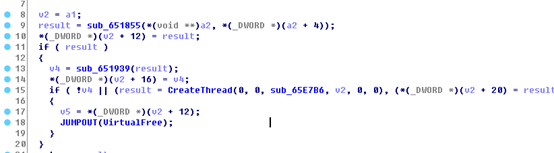 通过创建线程的方法在内存在执行从服务器下载的PayLoad,该段代码Dump之后发现也是一个DLL,参考编译时间为2019年10月15日。
