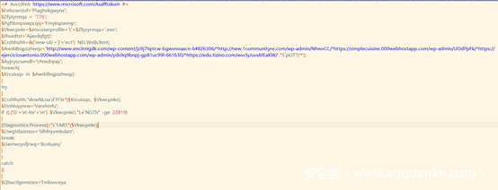 将解码的Base64数据整理之后发现该段代码会从五个不同的服务器中尝试下载下阶段攻击载荷,如果下载成功则执行该攻击载荷。