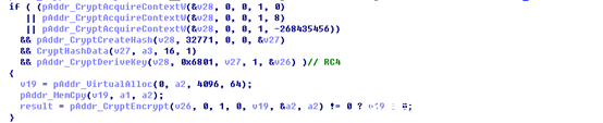 随后使用RC4解密ShellCode来执行,密钥为(vGdOmmadpKaisrM):