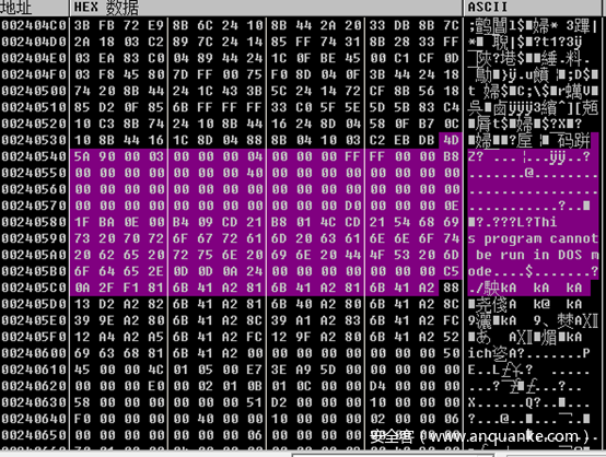 写入子进程的地址为0x40000,即子进程程序初始化时模块映射的地址,调用WriteProcessMemory写入该地址,覆盖原始数据,该注入技术为典型的Process Hollowing。