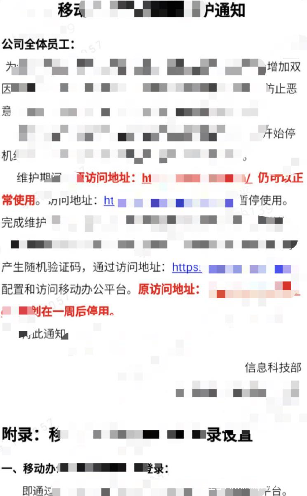 看到这个信息,心里一喜,感觉前方有路,随手用浏览器访问一下移动平台的登录地址跟注册地址,没毛病,可以成功进行访问。由于前期进行信息收集的时候也收集到一个vpn的登陆地址,目前根据这份通知可以确定,目标近期做了vpn登陆方式的变更,猜测目前可能有部分员工还没有完成登陆方式的变更,可能是一个突破口,于是我们把精力放在VPN这个点。