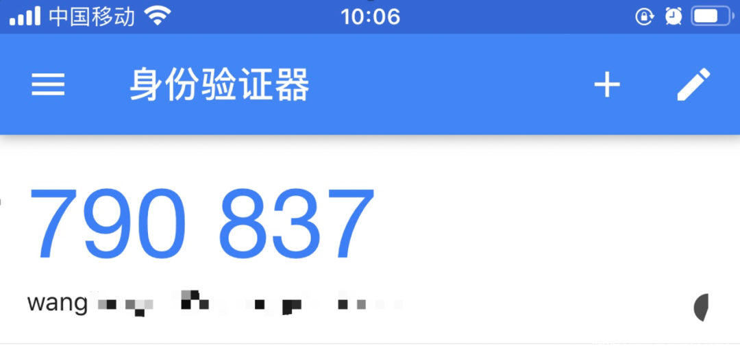 打开手机上的Authenticator扫描其中生成的二维码,点击进行绑定后,即可获得该用户的通行码。