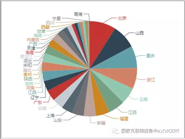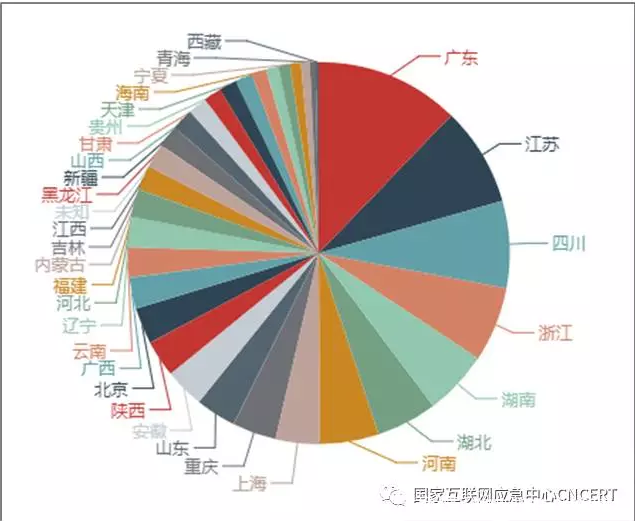 位于境内的控制端按省份统计,广东省占的比例最大,占12.2%;其次是江苏省、四川省和浙江省,如图3所示。