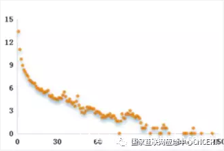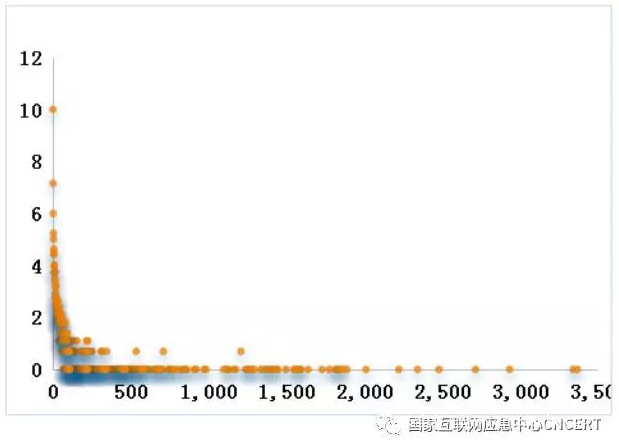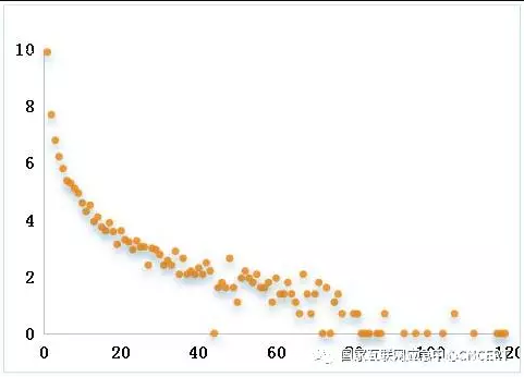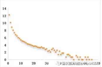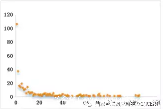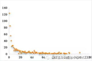 图18 跨域伪造流量来源路由器参与攻击天次呈现幂律分布