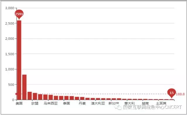 图2 发起DDoS攻击的境外控制端数量按国家或地区TOP30