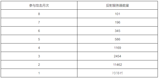 表3 反射服务器参与攻击月次情况