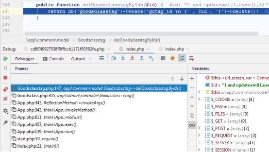 在Admin 控制器tag方法中对delGoodsclasstagByIds函数进行了调用,参数使用thinkphp封装函数input获取,类型是一个数组