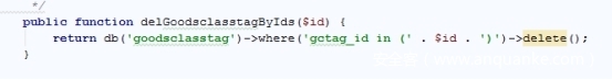 公共模块 Goodsclasstag.php delGoodsclasstagByIds 函数存在SQL注入漏洞。