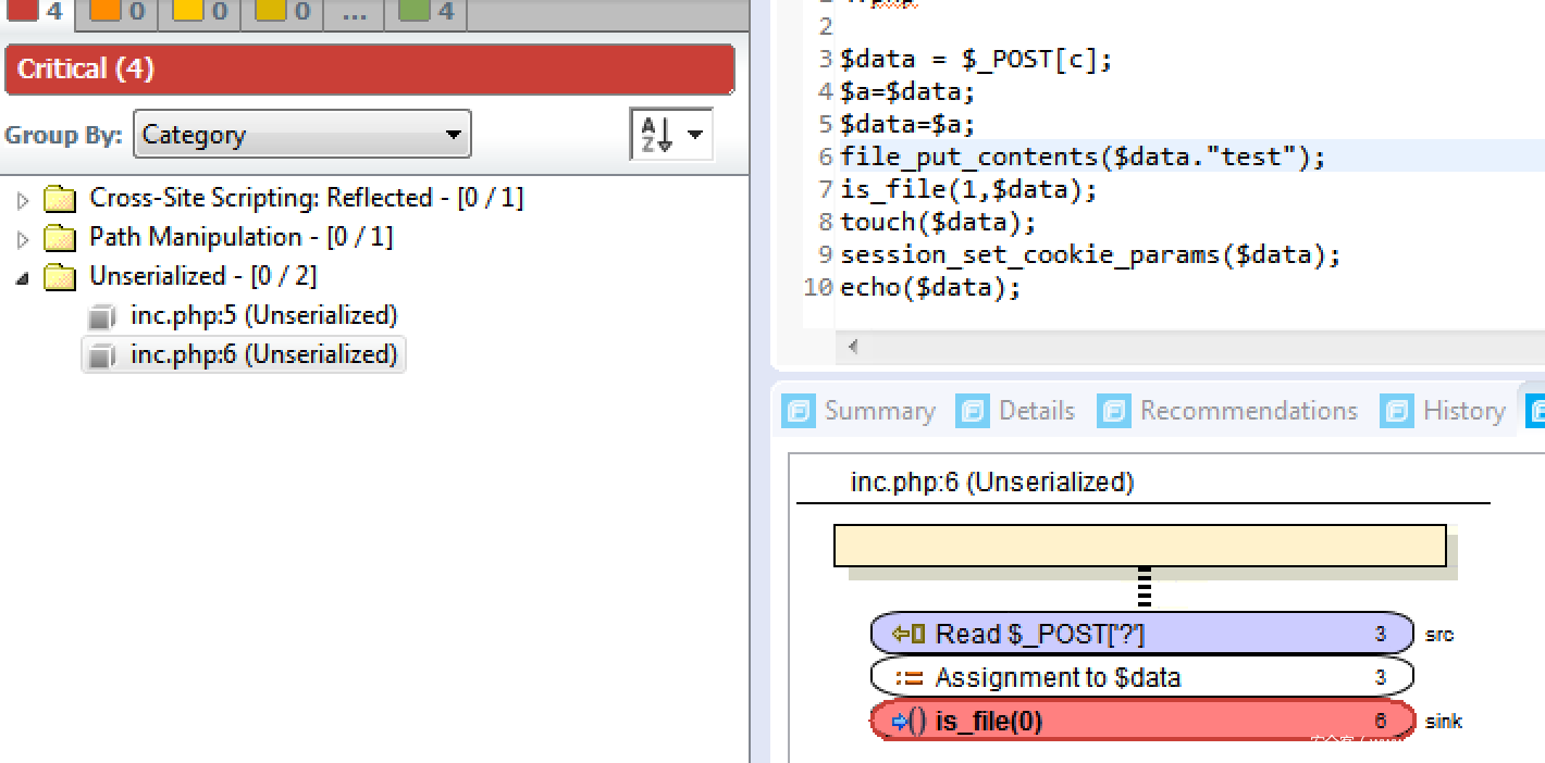 2018 BlackHat Sam Thomas分享了利用phar文件触发反序列化的研究文章,大大扩展了反序列化漏洞的攻击面,在审计cms的时候除了关注unserialize作为source之外,也应该重点关注这些能够利用phar文件反序列利用的函数,而对于php反序列化漏洞挖掘和利用(包括fuzz sink function 和pop chain find)期待下篇文章吧。