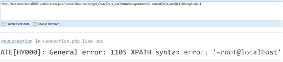 Home模块shopnearby控制器get_Own_Store_List方法存在SQL注入漏洞。