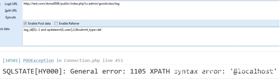 tag_id[0]= 1 and updatexml(1,user(),1)&submit_type=del