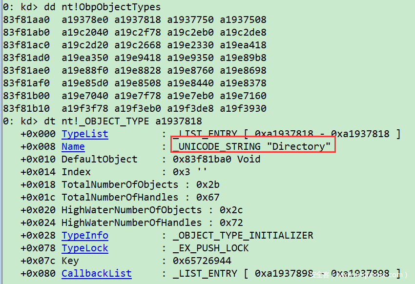 我们先来再看一下内核对象类型对象数组,找一个比较有意思的类型对象。