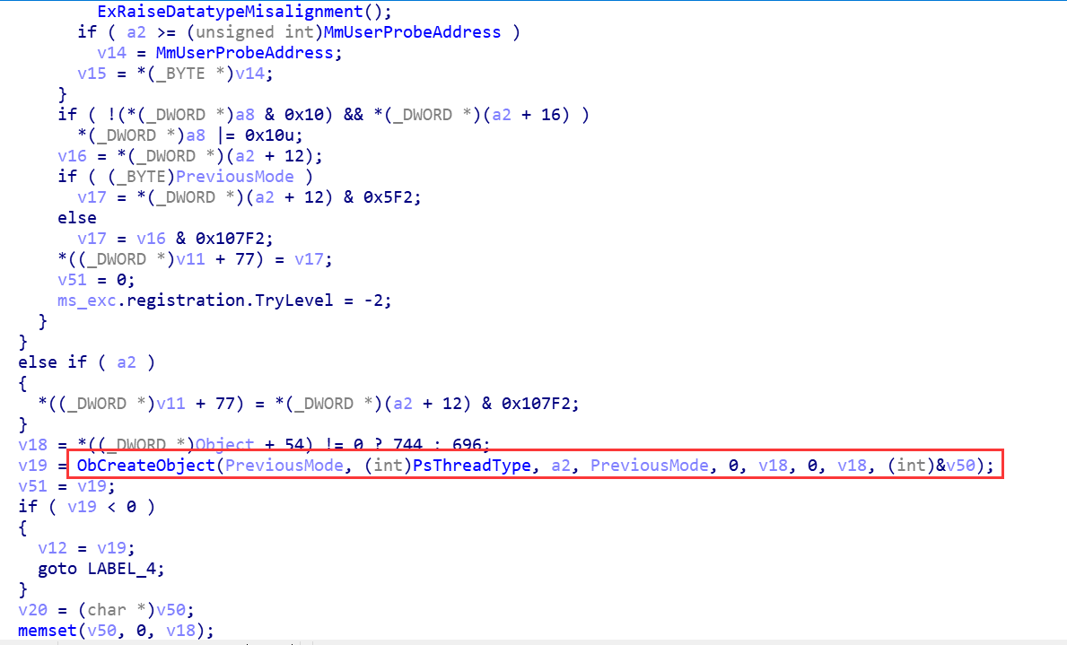 PspAllocateThread()内部调用了一个非常重要的函数——ObCreateObject(),如下: