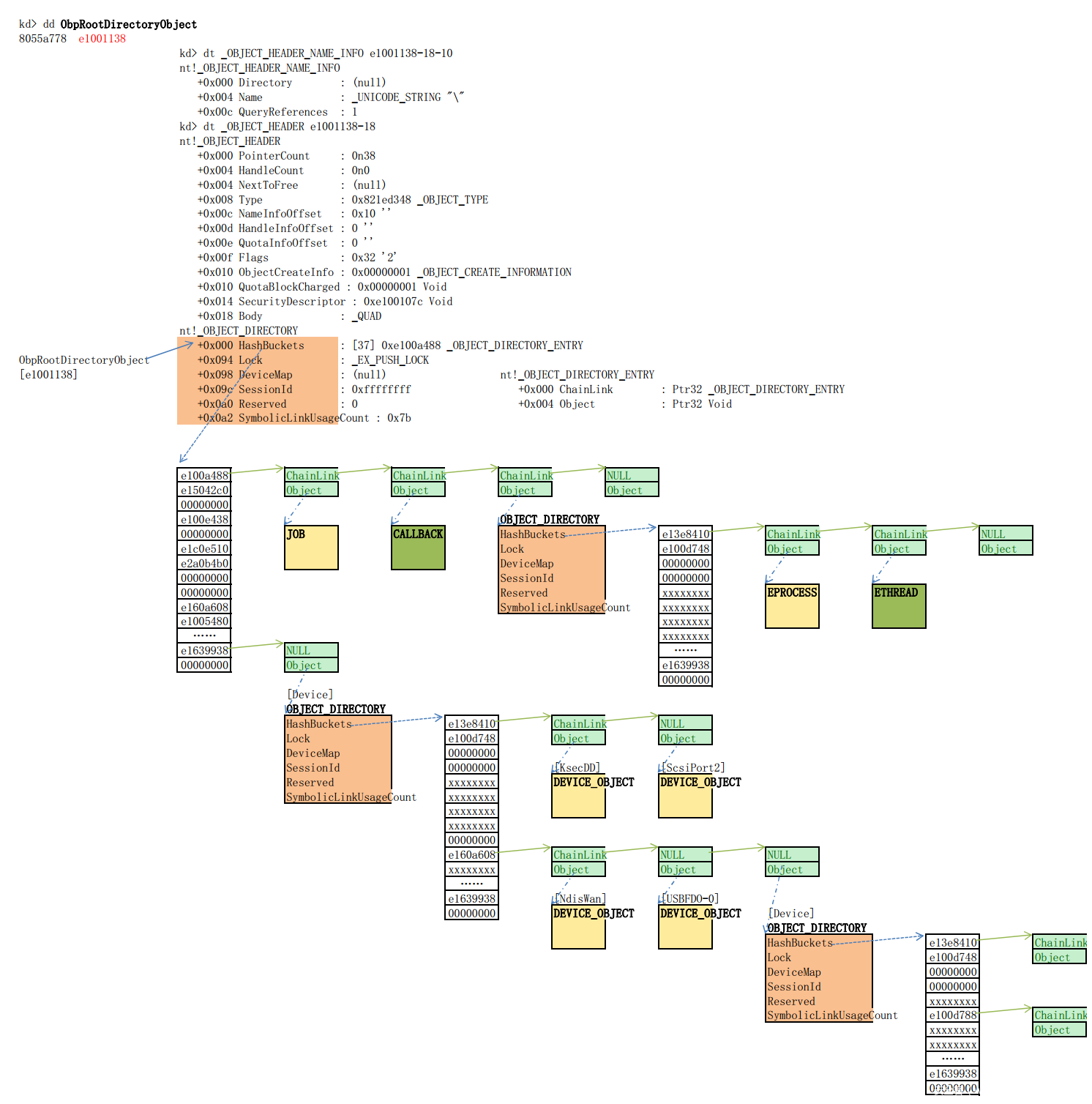 ChainLink:第一个字段是连接着下一个_OBJECT_DIRECTORY_ENTRY,是个单向链表;