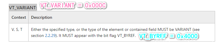其中VARTYPE可参阅[Microsoft Docs——VARIANT Type Constants]https://docs.microsoft.com/en-us/openspecs/windows_protocols/ms-oaut/3fe7db9f-5803-4dc4-9d14-5425d3f5461f。例: