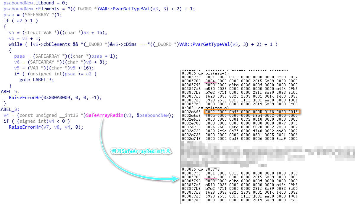 为psaboundNew各字段赋值完成后传递给SafeArrayRedim函数:
