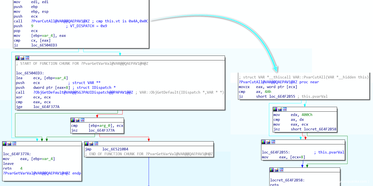 GetVarType函数调用PvarGetVarVal——判断类型值是否为0x4A或0x0C: