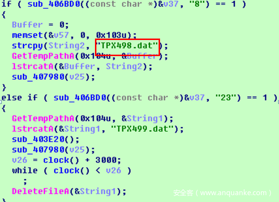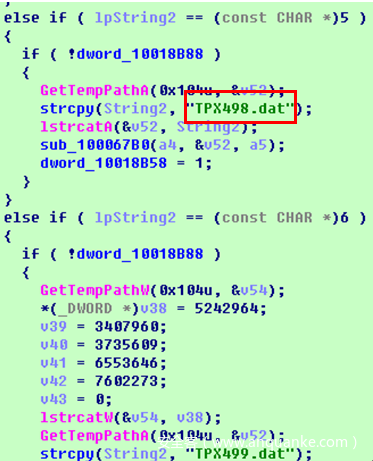 后门程序拥有键盘记录功能,通过调用GetAsyncKeyState函数实现,所有记录存放在Temp目录的TPX498.dat文件中