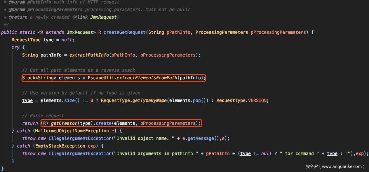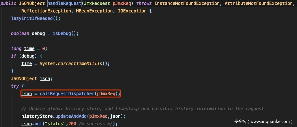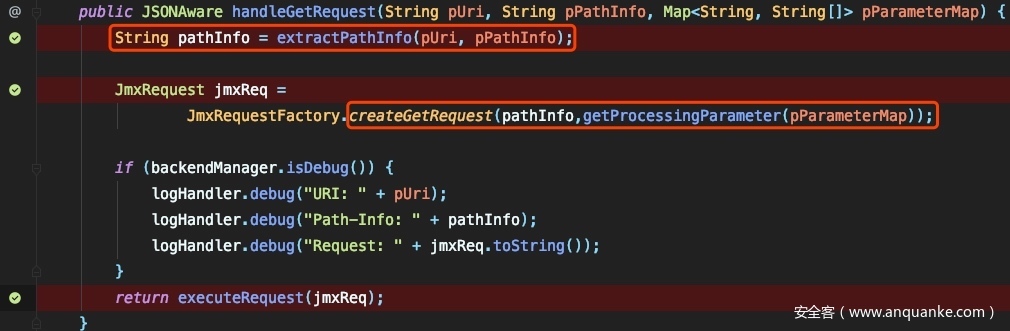 可以跟一下路由处理流程,最后在org.jolokia.http.HttpRequestHandler#handleGetRequest这里处理get请求: