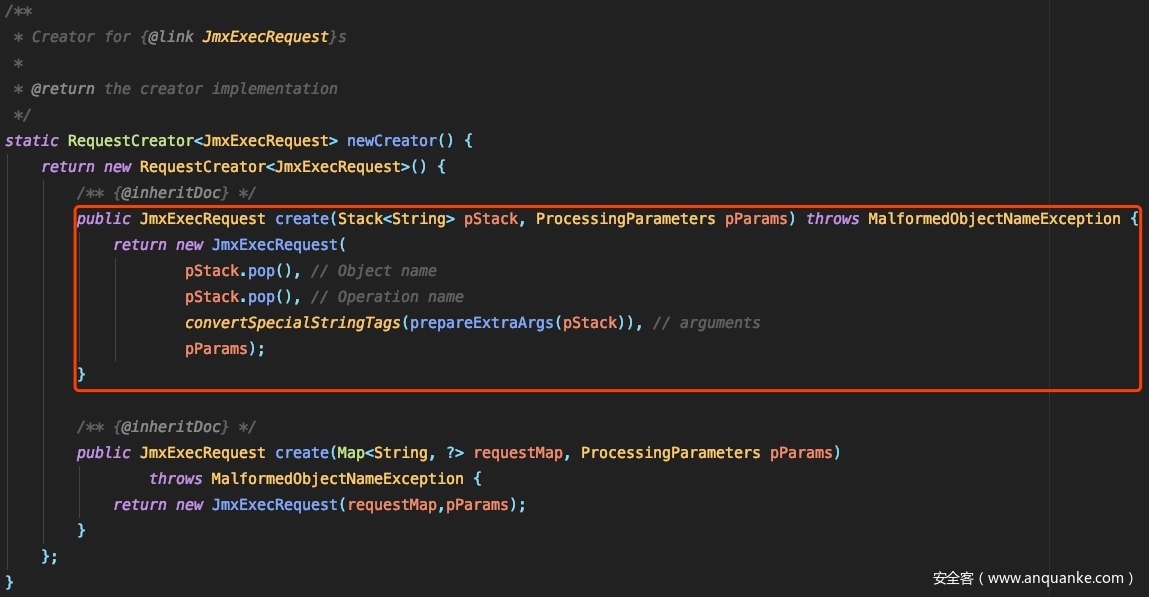 存在的话则调用相应的newCreator方法动态创建一个JmxRequest对象。这里是JmxExecRequest: