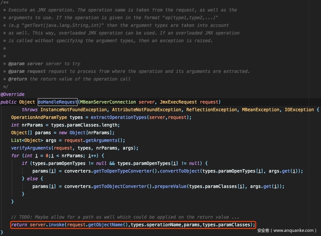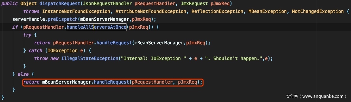 知道了JmxRequest的创建过程后,我们来看看它怎么用,这个时候需要跟进一下executeRequest方法。