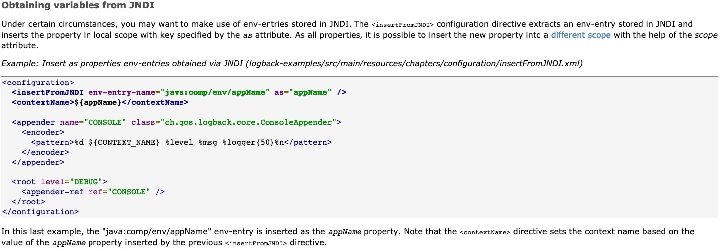 - https://logback.qos.ch/manual/configuration.html#insertFromJNDI