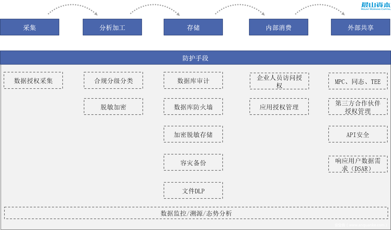企业针对隐私数据处理的不同阶段面临的风险,总结下来同样可以分为几类防护手段: