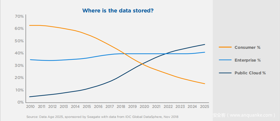 据IDC报告称,到2020年,我们存储在企业云中的数据将逐步超过消费者设备中的数据。这也可以解释为何现在个人隐私的数据泄露事件往往都是从企业端开始。