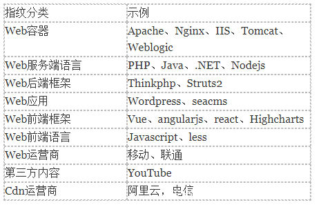 Web指纹可以根据不同的应用分成不同的类型,如下表所示: