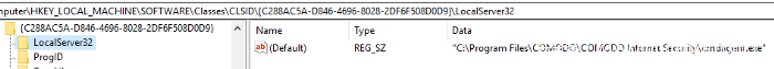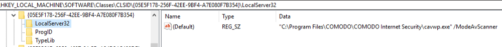 如果我们能澄清如何按照Comodo的方式连接到这个服务,那么可能我们会找到一种新的攻击面,发现除“扫描”之外更多有趣的函数。我们需要通过COM实现与CAVWP.exe的远程交互,因为从注册表中可知,CAVWP.exe是一个进程外的COM服务端: