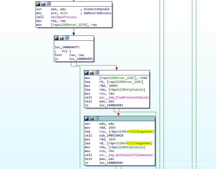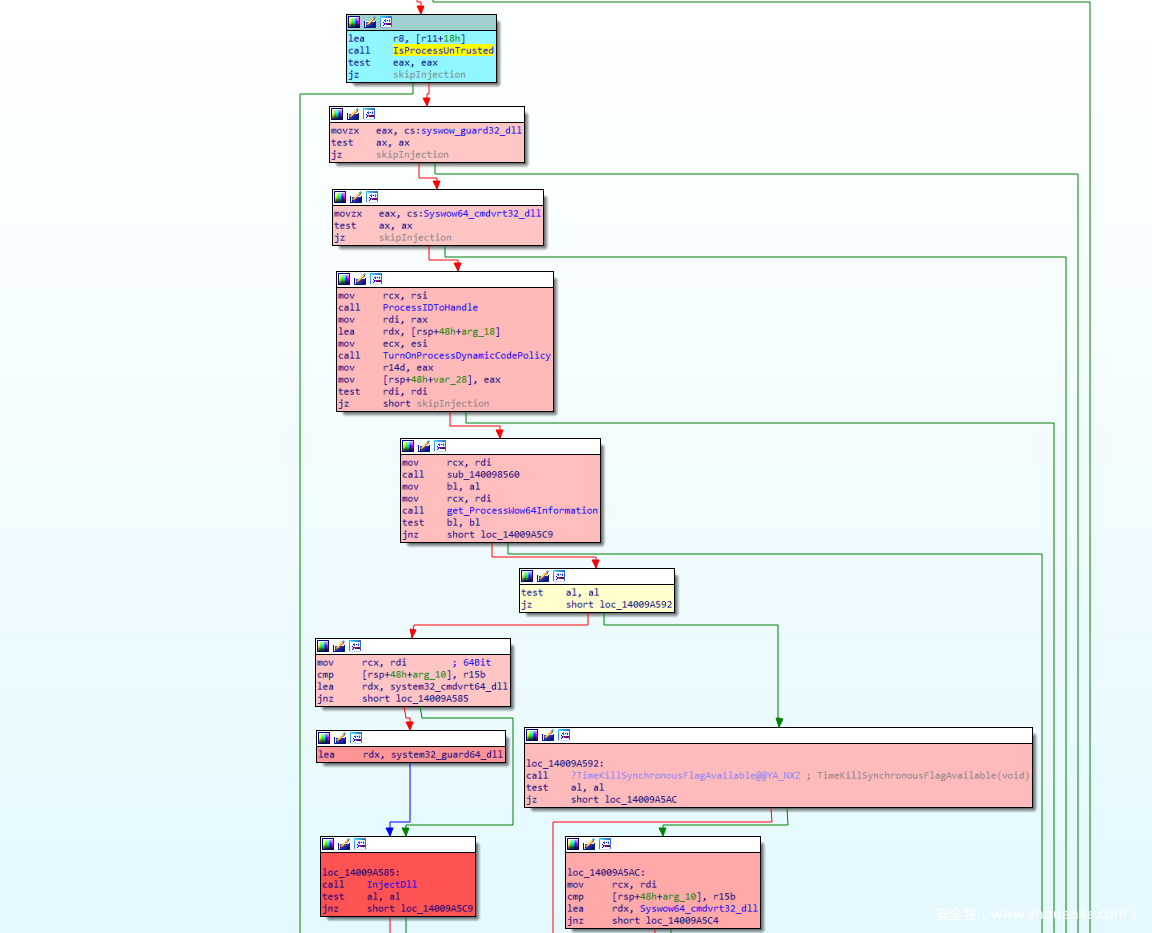 图13. 如果目标进程“可信”,Cmdguard.sys就不会注入Guard64.dll