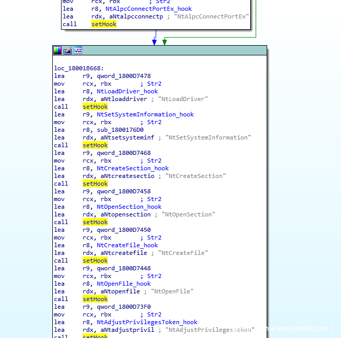 Guard64.dll在用户模式下设置的hook如下图所示: