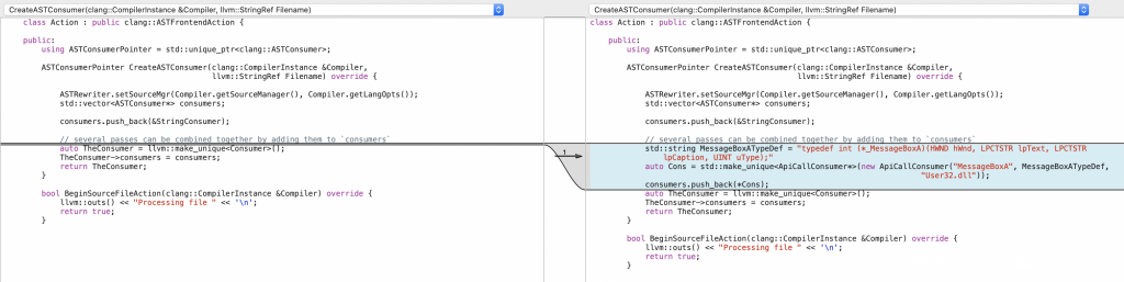 上一篇文章中大篇幅描述的方法同样可以用于重构现在的代码库,以便可疑API在运行时加载,并从导入表中删除其条目。 为此,我们将基于libTooling实现以下工作。