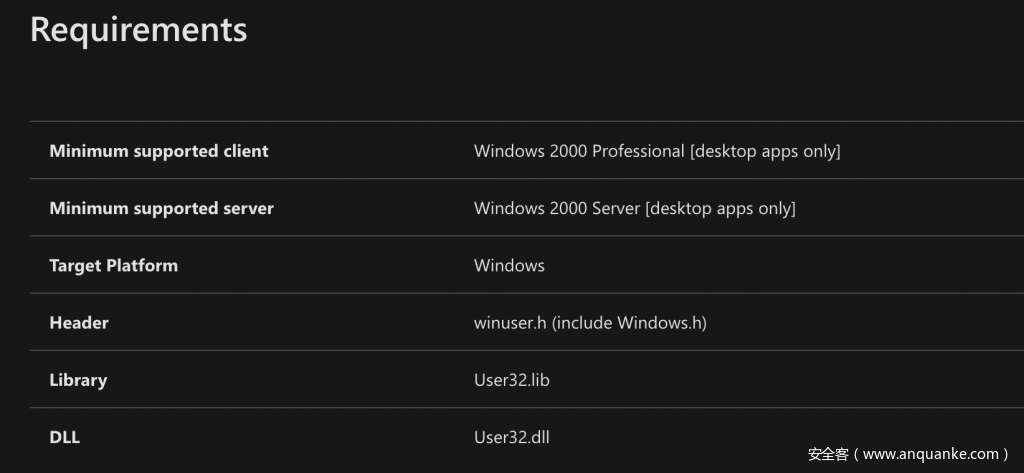 现在,我们需要MessageBox的原型,该原型可以从Windows SDK的winuser.h中复制粘贴,也可以直接从MSDN复制: