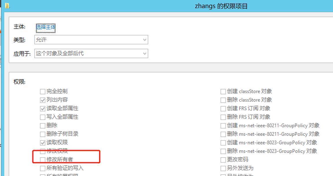 WriteOwner权限允许委托人修改对象的安全描述符的所有者部分。也就是说,假如用户A对administrator用户有这个权限,那么A能利用这个权限给自己附加其他的权限。