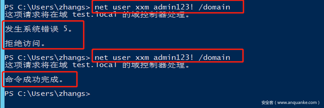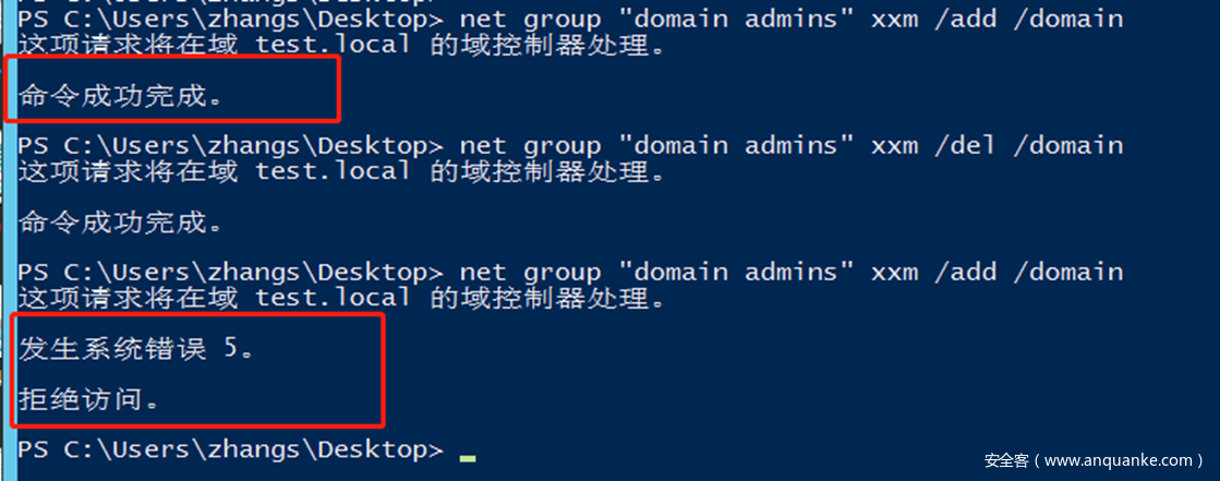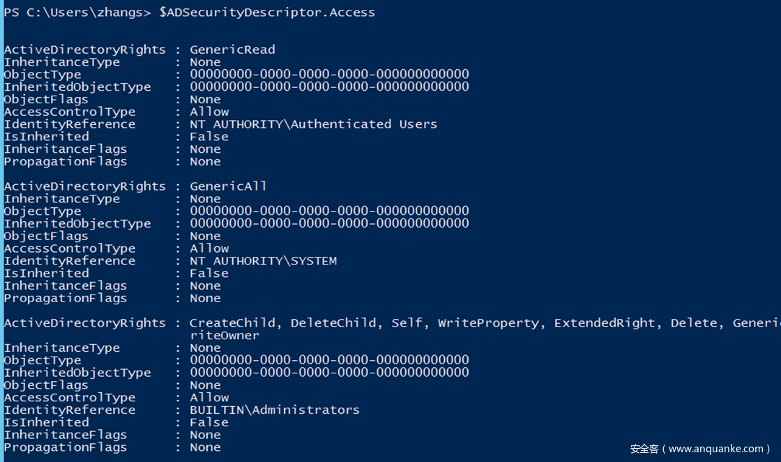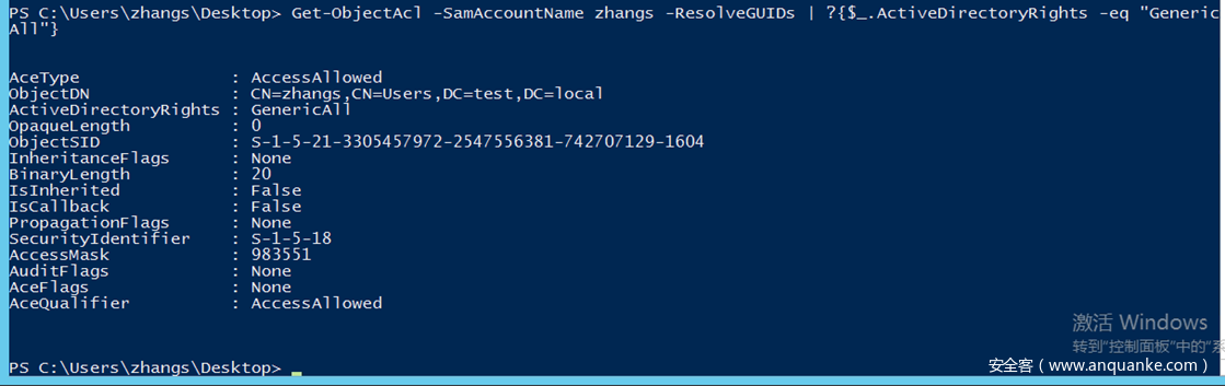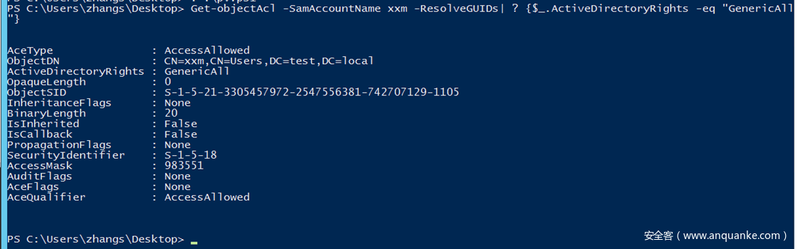 Add-DomainObjectAcl -TargetIdentity "CN=AdminSDHolder,CN=System,DC=test,DC=local" -PrincipalIdentity zhangs -Rights All