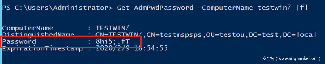 Get-AdmPwdPassword –ComputerName testwin7