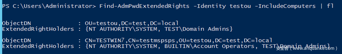 Find-AdmPwdExtendedRights -Identity testou -IncludeComputers | fl